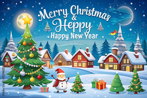 christmas, winter, snow, village, night, santa, snowman, tree, tree, decoration, ornament, gift, gift, present, festive, holiday, celebration, happy, new, year, merry, card, design, background, illustration, graphic, artwork, season, scene, landscape, cute, joyful, magical, bright, light, star, moon, sky, house, home, cosy, cheerful, jolly, fun, family, tradition, spirit