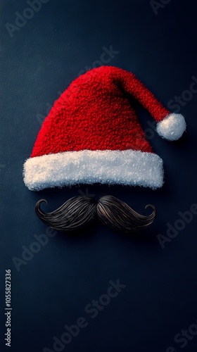 Santa Hat and Mustache on a Dark Background: A Minimalist Christmas Decoration