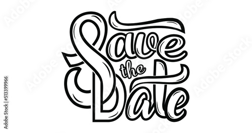Save the date hand-drawn in modern calligraphy style. Text lettering for wedding cards. One color phrase brush calligraphy. Vector isolated on white background