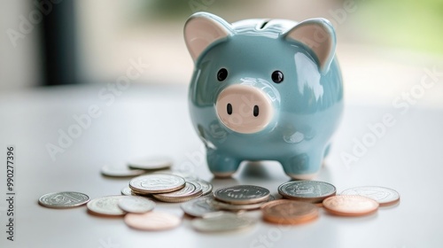 Saving Money with a Piggy Bank and Coins, Finance Management Tips for the Future