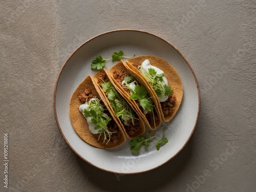 Savor crumbled chorizo tacos topped with onions and cilantro.