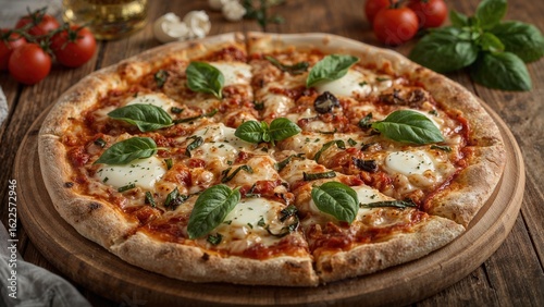 background, food, table, pizza, leaf, cheese, flat, healthy, natural, organic, dinner, board, meal, cookery, snack, epicure, lunch, wooden, sauce, favor, herb, calorie, tomatoes, basil, ingredient, mushroom, bowl, knife, mozzarella, olive, traditional, fast, appetising, cooked, cut, dark, delicious, fresh, homemade, italian, lay, object, receipe, slice, tasty, top, unhealthy, view, deliciously
