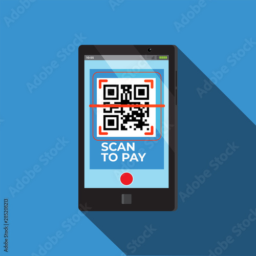 Scan To Pay Barcode Cashless Vector With Long Shadow