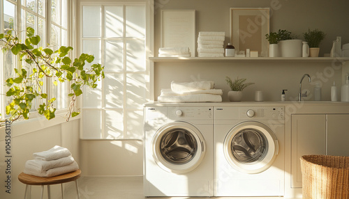 scandinavian, minimalist, clean, washing, machine, appliance, washing machine, equipment, illustration, household, clothes, home