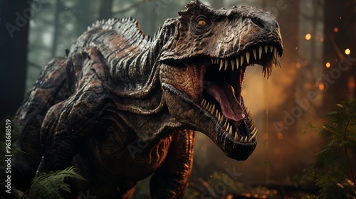 scary dinosaur standing in forest