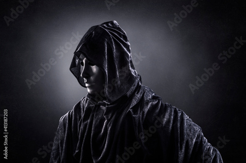 ghost, phantom, mystery, monastic, mystic, specter, spook, skittish, hood, cloak, figure, halloween, scarey, mask, nightmare, spirit, evil, creepy, black, darkness, mediaeval, robe, horror, dark, fear, fright, bad, danger, form, unreal, fiend, grim, haunted, omen, deadly, devil, gothic, fearful, soul, weird