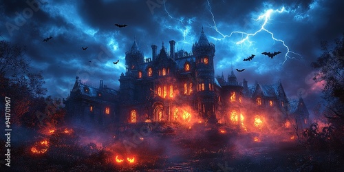 castle, halloween, horror, moon, night, house, moonlight, holiday, skittish, creepy, fantasy, background, scarey, cemetery, cemetery, ghost, grave, blue, nightmare, dark, evil, building, haunted, shade, fairy tale, landmark, mystic, illustration, apocalyptic, post, german, palace, panorama, silhouette, gloomy, apocalypse, bavaria, october, tree, shadow, grunge, lantern, dramatic, bat, lightning