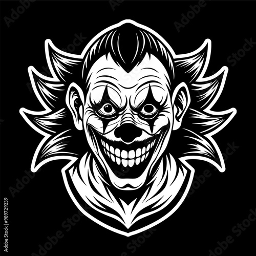 SCARY JOKER IN BLACK AND WHITE ILLUSTRATION