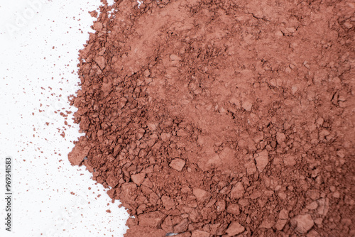 Scattered brown eyeshadow on a white background. Eye shadow texture