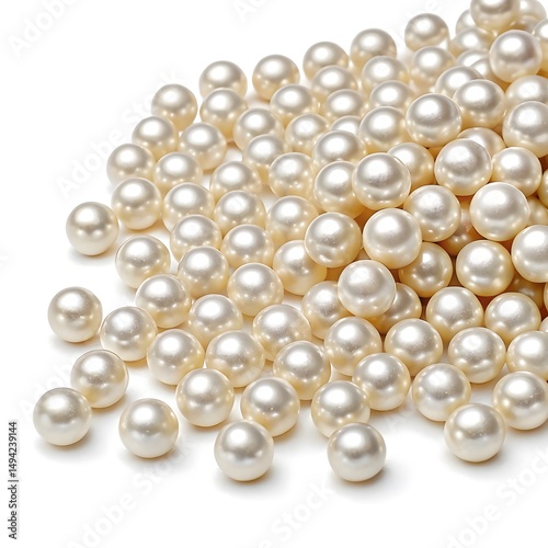 “Scattered shiny white pearls on a white background, elegant and luxurious.”