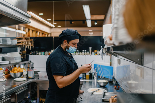 autumn, catering, chef, closeup, commercial, cook, cooking, culinary, cut, cutting, dark, delicious, diet, dinner, dish, eating, face mask, food, fresh, garnish, epicure, hand, healthy, hospitality, hot, indoor, industry, ingredient, job, kitchen, knife, lunch, male, man, mask, meal, nourishment, organic, person, plate, preparation, prepare, preparing, profession, professional, pumpkin, pumpkin soup, receipe, eatery, squash, table, traditional, uniform, vegan, vegetable, vegetable, vegetarian, work