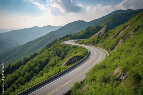 scenic, highway, winding, mountain chain, peak, background, landscape, nature, travel, road trip, adventure, outdoors, generative, ai, scenery, wilderness, countryside