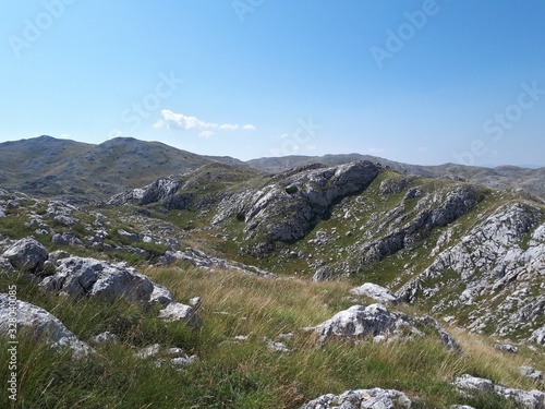 mountain, landscape, mountain, nature, sky, rock, stone, vale, grass, green, summer, hill, blue, view, travel, cloud, peak, alps, panorama, hiking, alpine, meadow, high, beautiful