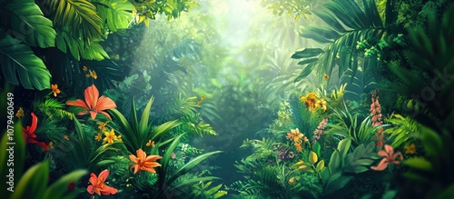Scenic natural backdrop with lush greenery and vibrant flora ideal for design elements or as a serene setting for projects and visuals