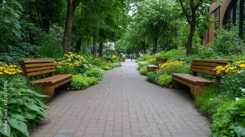 park, garden, bench, tree, path, flower, green, greenery, relaxing, urban, nature, landscape, peaceful, paseo, walk, bench, tranquil, environment, street, foliage, healthy, walking, leisure, park, summer, shade, scenic, city, beauty, healthy living, vibrant, wellness, serenity, mental health, well-being, relaxation, spring, blooming, sunlight