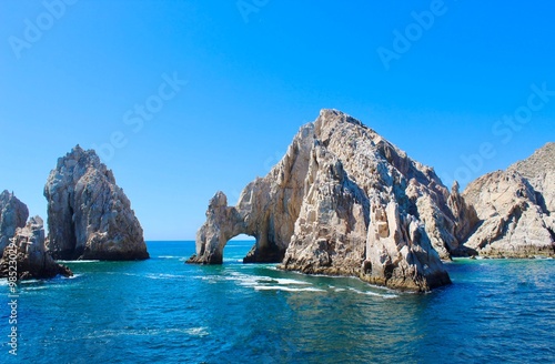Scenic View Of large rocks in the water with Arch of Cabo San Lucas in the background
