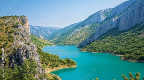 lake, mountain, landscape, nature, water, mountain, sky, norge, view, summer, travel, rock, green, vale, river, panorama, scenery, tour tourism, hill, scenic, alps, forest, peak
