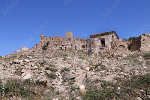 Scenic view of Craco ruins, ghost town abandoned after a landslide, Basilicata region, southern Italy