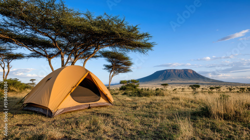 tent, mountain, acacia, landscape, camping, nature, adventure, travel, wilderness, sky, grass, horizon, scenic, peaceful, exploration, sunlight, summer, environment, tour tourism, calmness, wild, scenery, natural, terrain, relaxation, open space, remote, vibrant
