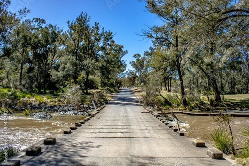 Scenic view of the Severn River bridge over a lake near Emmaville, Australia, surrounded by a forest