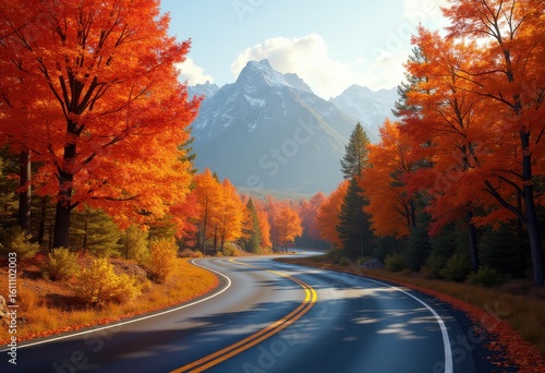 scenic winding road embraced vibrant autumn foliage colorful trees nature landscape, leaves, orange, yellow, red, scenery, parks, view, trails, forest