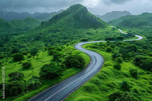 scenic, winding, road, green, hill, mountain, misty, atmosphere, landscape, travel, nature, picturesque, dense, foliage, adventure, lush, booklet, design, forest, greenery, highway, path, journey, exploration, cloudy, peaceful, tranquil, rural, countryside, horizon, vista, serpentine, overcast, serene, road trip, travel destination, enchanting, vegetation, vibrant, panoramic, wanderlust