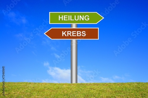 Schild Wegweiser: Heilung Krebs