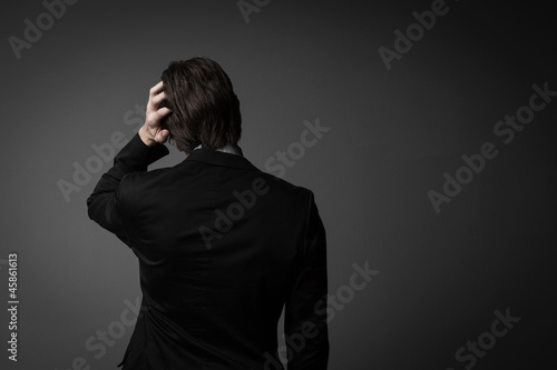 care, balance, burnout, finance, bustle, problem, stress, businessman, back, pensive, thought, crisis, cool, decision, thought, concept, hope, contemplate, daydreamer, posing, arrogance, board, management, style, different, workload, debit, damage, fear