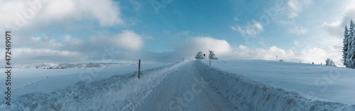 Schneebedeckte Strasse in verschneiter Winterlandschaft