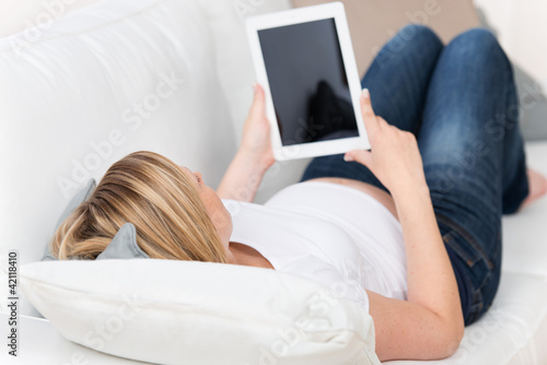 pregnant, pregnancy, computer, screen, monitor, relaxation, couch, lie, baby, cyberspace, online, web, web, surf, read, laid back, ease, inform, info, information, newsletter, break, happy, rest, home, living room, children, family, woman, mother, person, man, female, white, modern, blond, attractive, smiling