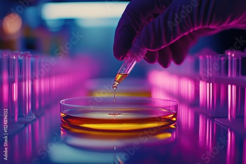 science, laboratory, experiment, research, scientist, pipette, petri, dish, neon, lighting, closeup, hand, liquid, test, tube, equipment, laboratory, analysis, chemistry, biology, innovation, technology, discovery, medicals, futuristic, glow, vibrant, precision, sterile, professional, scientific, health care, modern, colourful, environment, process, setting, scene, atmosphere