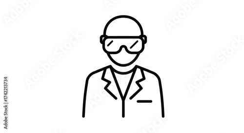 scientist, researcher, laboratory, laboratory, medicals, doctor, chemist, engineer, experiment, science, technology, innovation, health care, professional, men at work, person, icon, symbol, outline, line art, vector, illustration, graphic, safety, goggles, labcoat, uniform, occupation, career, education, study, discovery, analysis, biology, chemistry, physics, medicine, health, expert, specialist, technician, student, workplace, job, profession, industry, modern