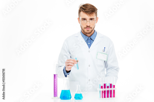 chemist, man, test, physics, pouring, chemistry, experiment, protective, white, medicals, liquid, formula, laboratory, substance, biotechnology, male, chemical, eyewear, analysis, vaccine, caucasian, female, analysing, tube, development, medicine, scientific, bottle, research, examine, holding, face, coat, scientist, science, biochemistry, make well, selective, investigating, flask, beaker, investigation, biomedical, work, accurate, laboratory