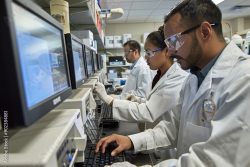 scientist, laboratory, computer, monitor, equipment, science, research, technology, work, professional, team, experiment, analysis, white, coat, goggles, glove, keyboard, datum, labware, medicals, laboratory, innovation, discovery, investigation, experimentation, scientist, health care, pharmaceutical, biotechnology, engineering, chemical, instrument, testing, result, bright, modern, clean
