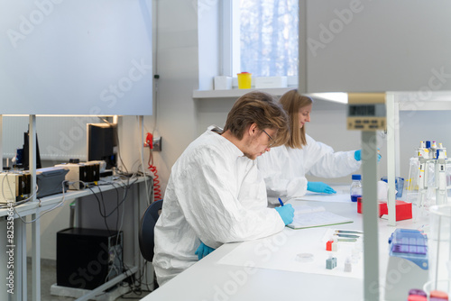 analysis, tied-up, chemistry, copy space, desk, engineering, equipment, health care, labcoat, laboratory, medicals, microbiology, modern, pipette, research, researcher, room, sample, science, scientist, student, study, technology, university, working, workplace