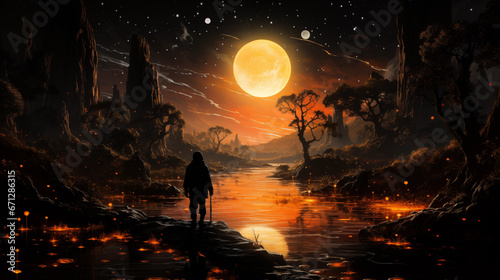 Scifi planet river illustration moon landscape