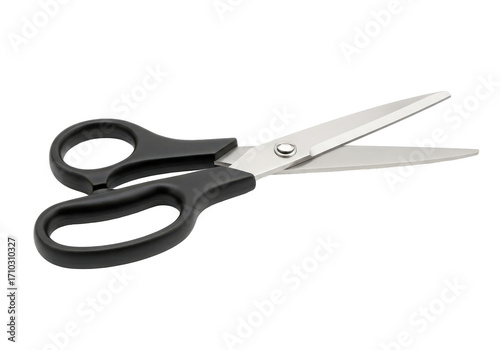 Scissors with black handles positioned on a white background, ideal for crafting and office use