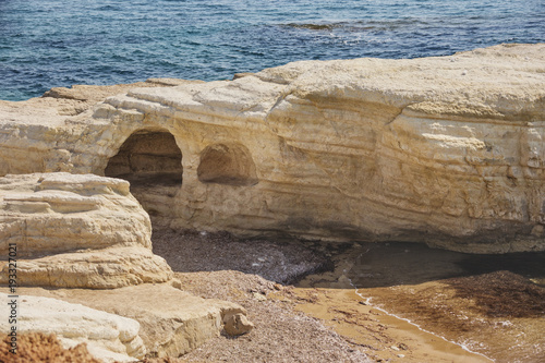 Sea caves near Paphos. Cyprus landscape. White cliffs