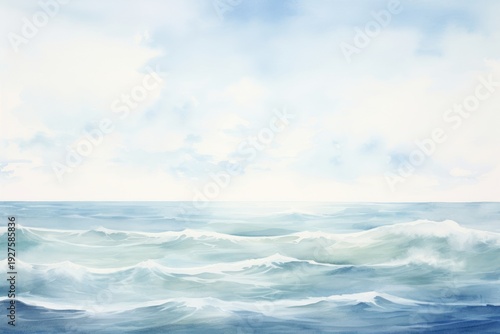 sea, ocean, sky, background, border, nature, landscape, outdoors, scenery, cloud, space, illustration, watercolor, abstract, painting, horizon, beach, water, blue, wave, graphic, white, top, copy space, iceberg, blank, rippled, water sport, isolated, seascape, bottom, motion, coast, shore, style, soft, day, calmness, idylli