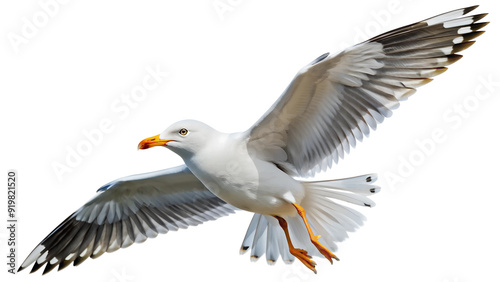 Seagull flying with wings spread PNG isolated transparent