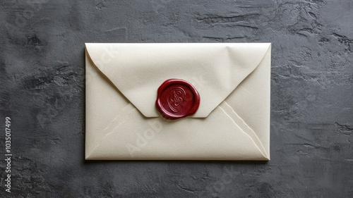 Sealed ivory envelope with red wax stamp on dark surface