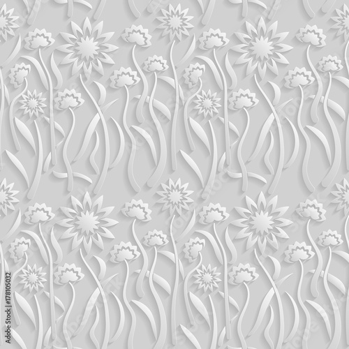 Seamless 3D white pattern, natural floral pattern, vector. Endless texture can be used for wallpaper, pattern fills, web page background, surface textures.