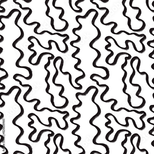 Seamless abstract textured pattern. Simple background black and white colors. Digital brush strokes background. Curly lines. Design for textile fabrics, wrapping paper, background, wallpaper, cover.