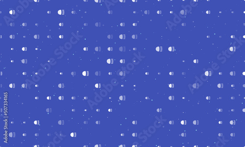 Seamless background pattern of evenly spaced white headlight symbols of different sizes and opacity. Vector illustration on indigo background with stars