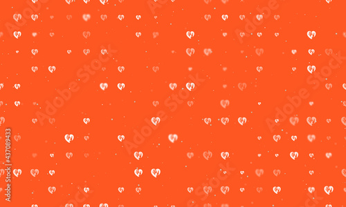Seamless background pattern of evenly spaced white mom with baby symbols of different sizes and opacity. Vector illustration on deep orange background with stars