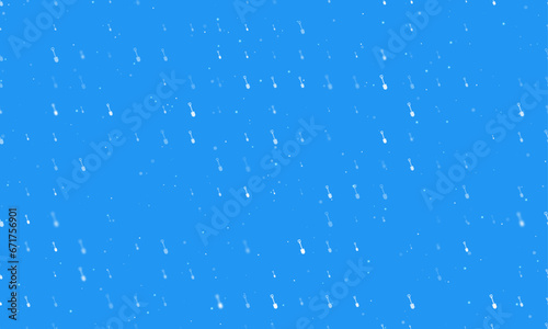 Seamless background pattern of evenly spaced white shovel symbols of different sizes and opacity. Vector illustration on blue background with stars