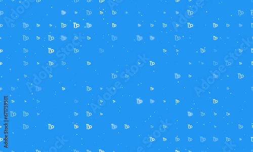 Seamless background pattern of evenly spaced white zodiac capricorn symbols of different sizes and opacity. Vector illustration on blue background with stars