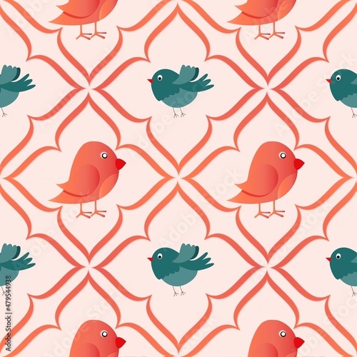 Seamless background with chickens...Cartoon illustration as texture with birds...Happy Easter.
