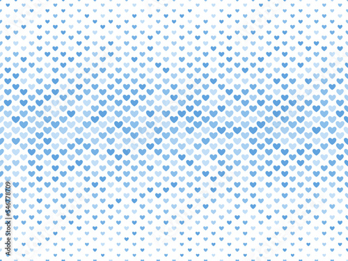 Seamless background with randomly colored pastel blue hearts. Halftone hearts pattern on transparent background.