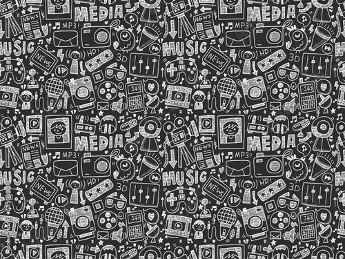 media, pattern, laptop, network, motion picture, wrapper, music, vector, signs, television, symbol, multimedia, cyberspace, video, social, event, drawing, black, megaphone, computer, doodle, icon, entertainment, mobile, web, newspaper, television, vignetting, film, mail, set, infographic, smartphone, microphone, draw, background, seamless, phone, camera, radio, screen, hand, news, buttons, communication
